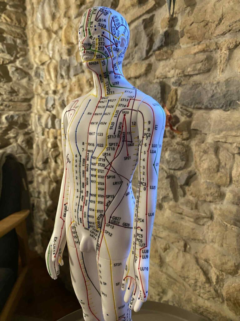 Lors des séances d’EFT, Je vous propose de visualiser sur un mannequin,  les différents méridiens énergétiques et les points sur lesquels nous allons tapoter. Ce qui permettra de rassurer les plus cartésiens sur la technique de l’EFT. Le mannequin a différents circuits de couleur, pour représenter les différentes méridiens.